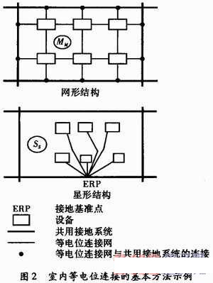 網(wǎng)形和星形等電位連接的基本方法如圖2所示。