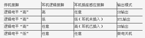 如上所述,採用此立體聲聲頻子系統(tǒng)來驅(qū)動喇叭(BTL)和耳機(jī)(SE)負(fù)載是簡單易行的。然而,只有HP邏輯接腳用于控制BTL / SE操作并且HP檢測接腳與GND連接時,此配置才發(fā)揮作用。