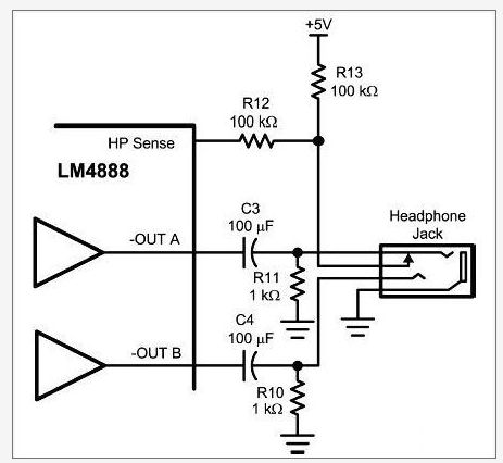基于每個耳機(jī)檢測電路端口設(shè)計(jì)會採用不同要求,因此,該聲頻子系統(tǒng)提供兩個獨(dú)立的耳機(jī)(HP)控制輸入接腳。耳機(jī)的允許輸入可啟動SE輸出耳機(jī)模式和關(guān)閉BTL輸出模式。耳機(jī)感應(yīng)檢測輸入需要用一個常規(guī)立體聲耳機(jī)插孔配合一起使用。剩余的HP邏輯輸入,能允許使用一個標(biāo)準(zhǔn)邏輯電平(Logic Level)來控制。