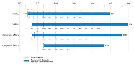 圖1 與競爭對手相比,吉時利SMU有更寬的動態范圍
