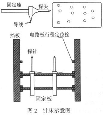 針床是電路板測試系統(tǒng)的重要部件,是電路板信號導(dǎo)出的平臺。針床的通用性較差,一般是每種電路板對應(yīng)一個(gè)特定的針床,這使系統(tǒng)的通用性受到很大的限制。為使針床具有一定的通用性,本系統(tǒng)中對針床的相關(guān)部件進(jìn)行了一些改進(jìn):