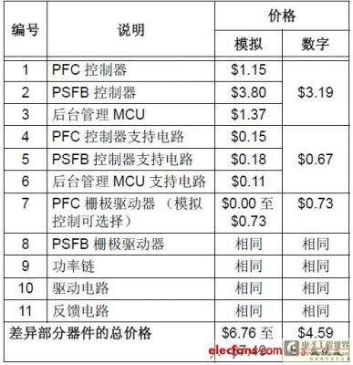 表 1: 300W 模擬與數(shù)字電源物料價(jià)格比較