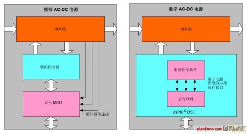 傳統(tǒng)開關(guān)電源(Switch Mode Power Supply,SMPS)控制通常使用純模擬技術(shù)。低成本和高性能數(shù)字信號(hào)控制器(Digital Signal Controller, DSC)的出現(xiàn)開啟了開關(guān)電源控制的全新境界,并且標(biāo)志著電源產(chǎn)業(yè)正朝著數(shù)字革命的方向發(fā)展。
