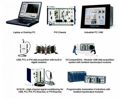對于采用通用數據采集設備和外部信號調理硬件的測量產品,市場上有數種配置可供選擇。例如,NI M系列包含多款提供高性能模擬I/O和數字I/O的非隔離式通用多功能數據采集設備。對于需要隔離功能的應用,您可以使用M系列設備及配套的外部信號調理電路,如NI公司的SCXI模塊或SCC模塊。這些信號調理平臺提供了您為了實現與載荷測量計、應變計以及pH傳感器等工業傳感器直接連接所需的隔離功能和專用信號調理功能。