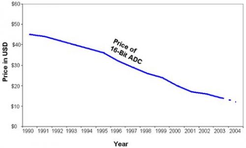 ADC是任何模擬輸入數據采集設備的關鍵組件之一。為了獲得最佳性能,ADC的輸入信號應當盡可能接近原始的模擬信號。模擬隔離可能會在信號到達ADC之前導致包括增益、非線性和偏偏移量等誤差。將ADC放置在更為接近信號源的位置可以獲得更好的性能。同時,模擬隔離組件價格較高,而且可能存在建立時間過長的缺點。盡管數字隔離可以獲得更好的性能,但是,在過去使用模擬隔離的原因之一卻是為昂貴的ADC提供保護。由于 ADC的價格已經大幅下降,測量設備的供應商們正在選擇通過對ADC的保護來換取數字隔離裝置所提供的更好性能和更低成本,如圖9所示。