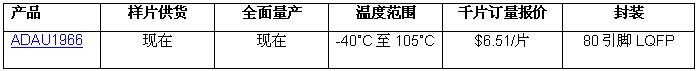 ADAU1966已經(jīng)通過AEC-100汽車應(yīng)用認(rèn)證,工作溫度范圍為-40° C至+105° C。它還提高SPI/I2C端口,允許外部微控制器調(diào)節(jié)音量,并以+/-3°C的精度讀取芯片溫度。