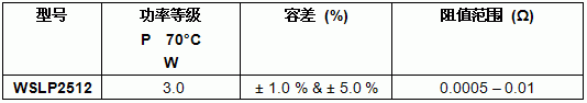 新款WSLP2512 Power Metal Strip電阻:規格匯總表