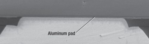 WCSP 供應商在從焊盤到區域陣列范圍 (area array pattern) 的什么地方構建布線所需的 RDL 存在爭議。晶圓加工廠方法(請參見圖 1)中,通常將一個額外增加的鋁層用于這種連接。這種方法的缺點是凸塊支持會占用很多的頂層金屬面積。