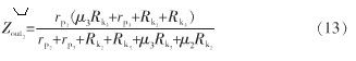 輸出端施加一個電壓U′o2,這時從輸出端向內看的電流記作為I′o2,可由式(10)~(12)計算得出: