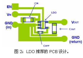 典型LDO應(yīng)用需要增加外部輸入和輸出電容器。LDO穩(wěn)定性與輸出電容的ESR密切相關(guān),選擇穩(wěn)定區(qū)域比較大的LDO有利于系統(tǒng)的設(shè)計(jì),并可以降低系統(tǒng)板的尺寸與成本。利用較低ESR的電容一般可以全面提高電源紋波抑制比、噪聲以及瞬態(tài)性能。