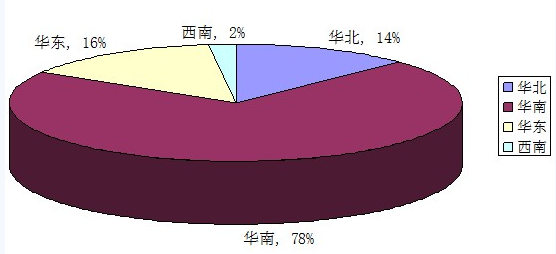 • 華南擁有著絕大部分的生產(chǎn)廠商占比高達(dá)43%