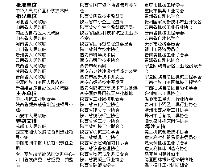 ●巡回推介會:組委會安排專人前往包括省內的寶雞、漢中、咸陽、延安、榆林、安康、渭南、銅川、商洛及鄰近省份山西、河南、湖北、甘肅、青海、寧夏、內蒙、新彊等省的重點城市及重慶、貴州、云南、廣西、廣東、上海、北京以及浙江、山東、江蘇等省區重點裝備制造工業城市巡回推介宣傳本屆博覽會。