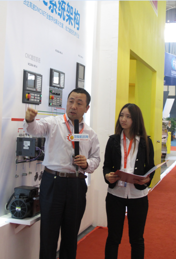 中達(dá)電通伺服&數(shù)控產(chǎn)品開發(fā)處經(jīng)理李文建向媒體介紹臺(tái)達(dá)展臺(tái)
