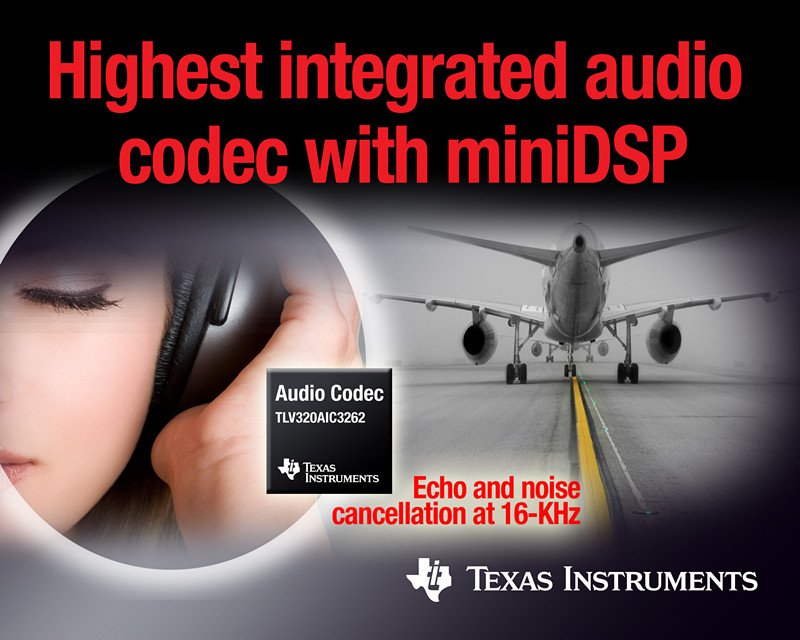 采用 4.8 毫米 x 4.8 毫米 WCSP 封裝的 TLV320AIC3262 現已開始供貨。