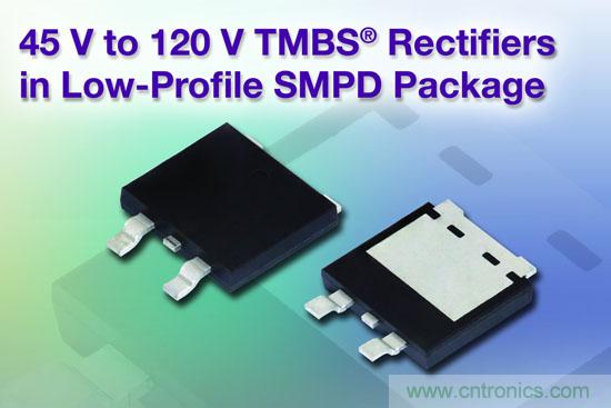 圖1:Vishay新款45V-120V TMBS整流器,用于商業應用的低外形SMPD封裝