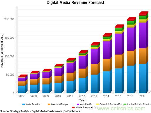 ●目前和未來五年中,數字媒體市場的總價值是多少?