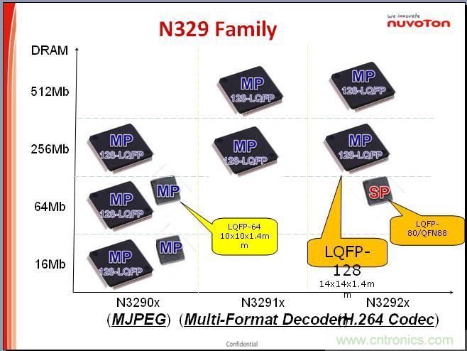 這個(gè)是N329的線(xiàn)型表,最主要是90系列和91、92系列,每一個(gè)都有不同的系列,最主要的區(qū)別是存儲(chǔ)卡的大小,從1X16、4X16、16X16,這邊是32X16,也有16X16的,但是接口大同小異,封裝都是128P,后續(xù)也有80、88P的。