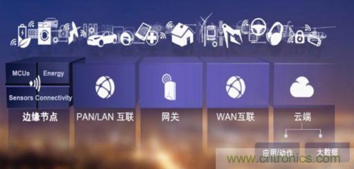 目前,整個物聯網的系統架構可以分為5個部分,分別是邊緣節點、PAN/LAN互聯、網關、WAN互聯和云端,如圖1所示。飛思卡爾發現,很多公司所做的產品無法在邊緣節點、網關以及云端這3個層次中共用。例如可穿戴設備,或者所設計的智能家居中的某些節點,要對該節點進行控制,可能選擇方案是“入門級低功耗MCU+連接性+傳感器”,這種設計方式是純粹的MCU設計方式。到了網關層次,復雜度會提高,就更偏向于使用高端的MCU,甚至是MPU。到云端就更復雜了,它的設計可能采用應用處理器或者通信處理器。在物聯網的構架中,大部分設備使用不同的技術、工具和開發環境,甚至連編程語言也是不同的。怎樣來解決這個問題呢?