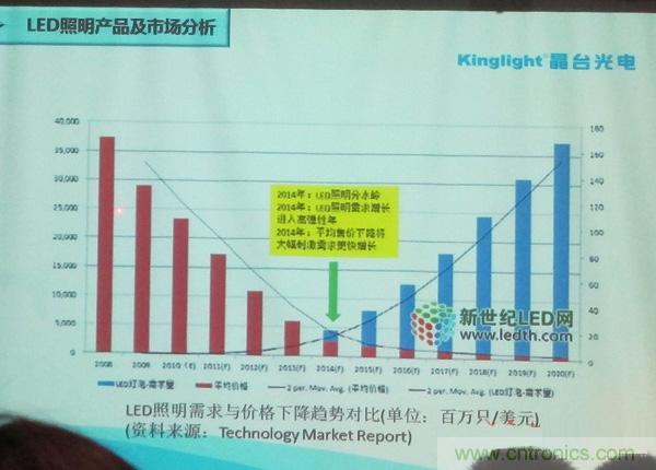 晶臺光電技術總監邵鵬睿看好LED照明未來的發展,他說,2014年LED照明平均售價的下降將大幅刺激需求快速增長。而價格和可靠性是當前影響LED進入室內照明的最重要因素。