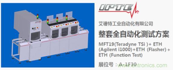 SMT后端是全自動化發(fā)展重點,2015年NEPCON China中國電子展,IPTE將現(xiàn)場演繹精彩的全自動化方案,推出全自動測試線 BTR+ IPTE MFT19’(泰瑞達TSi )+ IPTE ETH(安捷輪i1000)+ IPTE ETH(燒錄器)+ IPTE ETH(功能測試) +BTR),其中串聯(lián)3臺ETH 配置為雙層軌道,將全新演示快捷而安全的無縫連接測試方案,讓所有的測試瓶頸和人為干涉成為歷史。IPTE提供的整套全自動化解決方案,得以幫助電子和機械制造業(yè)實現(xiàn)真正的全自動生產和測試,將顯著提高客戶產品的產量和質量。IPTE產線在展會現(xiàn)場的演示時間為每天上午10:30分和下午2:30分,熱忱歡迎新老客戶光臨展臺A-1F30。