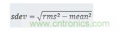 rms值現在變高了,因為包含了偏移量。知道均值和rms值后就可以計算sdev值了。