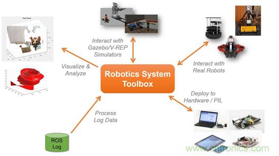 現(xiàn)在,機(jī)器人研究人員和工程師們可以在單個統(tǒng)一的設(shè)計(jì)環(huán)境中開發(fā)機(jī)器人算法,在支持ROS 的機(jī)器人和機(jī)器人仿真器(如 Gazebo 和 V-REP)上測試和部署機(jī)器人算法。它通過減少從 MATLAB程序轉(zhuǎn)換到 ROS程序所需的手動修改時間,預(yù)留了更多的時間來測試和調(diào)試算法。