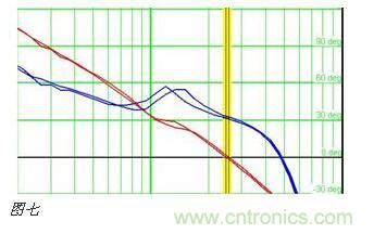 我們有可能會(huì)看到的相位裕量不能達(dá)到要求。如下圖七,只有30度左右。這個(gè)時(shí)候,只有調(diào)試不同的參數(shù),才能得到比較好的結(jié)果。從而滿足系統(tǒng)穩(wěn)定性的要求。
