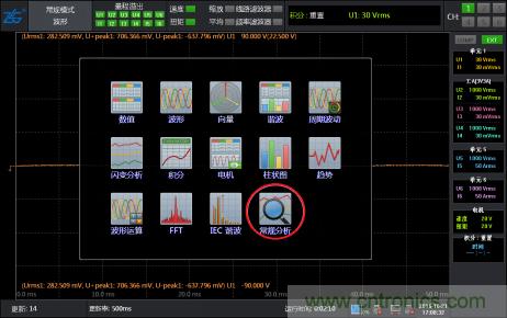 PA系列功率分析儀都具備波形回放和波形記錄功能。波形回放是指在測試過程中可以隨時將測試儀器暫停下來,通過波形回放來觀察暫停前一段時間內的波形,具體操作如下: