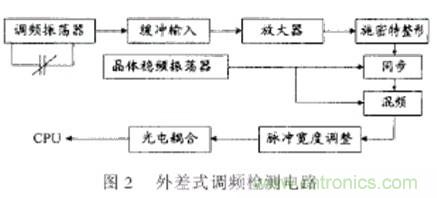 如圖3所示,由于采用了最新的大規模集成電路,電感傳感器的檢測電路比較簡單,且集成電路采用了新的調制解調方法和算法,減少了以前的檢測外差式調頻檢測電路方法由于傳感器的激勵信號的相角、頻率以及幅值漂移對檢測結果的影響,大大進步了檢測精度和穩定性。