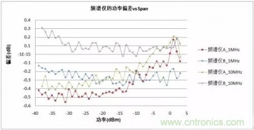 從上述測試結果我們發(fā)現,RBW的變化對頻譜分析儀A的幅度誤差有著較大的影響;而頻譜分析儀B在Span變化時有著較好的測試一致性。
