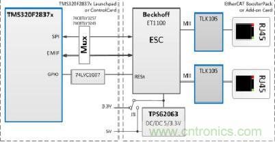 圖示1-大聯(lián)大友尚推出的基于TI高性能MCU的EtherCAT接口參考設計系統(tǒng)架構圖