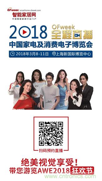 【導(dǎo)讀】OFweek智能家居網(wǎng)小編和林志玲、那英、楊冪、林更新等一線明星,都在2018中國家電及消費(fèi)電子博覽會全程直播http://live.ofweek.com/live/116等著你!