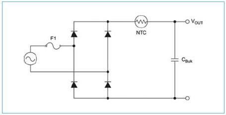 NTC 存在的另一個(gè)主要問題就是其熱堆積 (thermal mass) 或時(shí)間響應(yīng)。如果電源電壓暫時(shí)下降或電源電壓長時(shí)間嚴(yán)重欠壓,而此時(shí)大容量電容器又切斷對(duì)其的有效充電,那么將會(huì)引發(fā)問題。當(dāng)線電壓恢復(fù)正常時(shí),NTC 或許還未能獲得足夠的冷卻時(shí)間,這樣將使其處于低阻抗?fàn)顟B(tài)。在這種情況下,由于線電壓的恢復(fù)而產(chǎn)生比正常情況下更高的浪涌電流,甚至比初次啟動(dòng)時(shí)產(chǎn)生的浪涌電流還要高。此時(shí),電路無任何保護(hù)措施。這種超乎尋常的大電流會(huì)損壞電路中傳動(dòng)系元件,如保險(xiǎn)絲、焊點(diǎn)、線跡以及路徑中的所有元件。