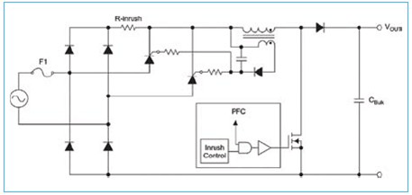 在 UCC28070 或其設(shè)計(jì)中集成浪涌電流限制功能,只需將圖 3 中的浪涌電流組件添加到其中的一個(gè)相位電感上即可。