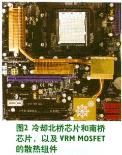 為了應對未來的需求,出現了雙面封裝技術,可讓主板設計師對高性能應用的MOSFET進行散熱處理,迫使MOSFET廠商成為總體解決方案的供應商。過去,臺式電腦在處理器及北橋芯片和南橋芯片上使用散熱片。雖然這在先前的主板設計中不常見(主要是成本原因),但對MOSFET進行散熱已越來越常見。高級主板市場已經開始出現將北橋芯片和南橋芯片上的導熱管連接到VRM的MOSFET散熱片上的散熱組件(見圖2)。
