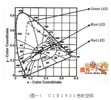 顏色的選擇相當(dāng)簡(jiǎn)單,以上述的例子為例,目標(biāo)色D65以感測(cè)器電壓的方式指定,在實(shí)際應(yīng)用上,目標(biāo)色可以CIE 1931xyY系統(tǒng)的座標(biāo)指定,當(dāng)然也可採用如CIE uvY與CIE RGB等其他色彩系統(tǒng)。例如,要選擇照度E做為目標(biāo)色,只要將(x, y, Y)=(330, 330, 200)的值送到ASSP中適當(dāng)?shù)臅捍嫫骷纯赏瓿伞?br />