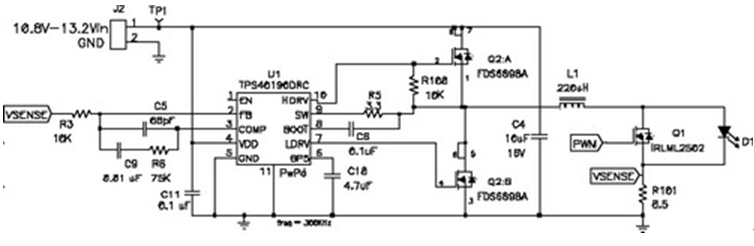 圖9 Q1 用于PWM LED電流