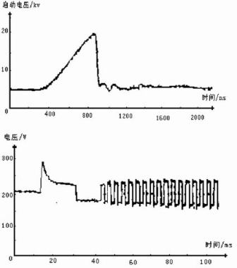 圖6 冷燈啟動高壓和工作電壓波形