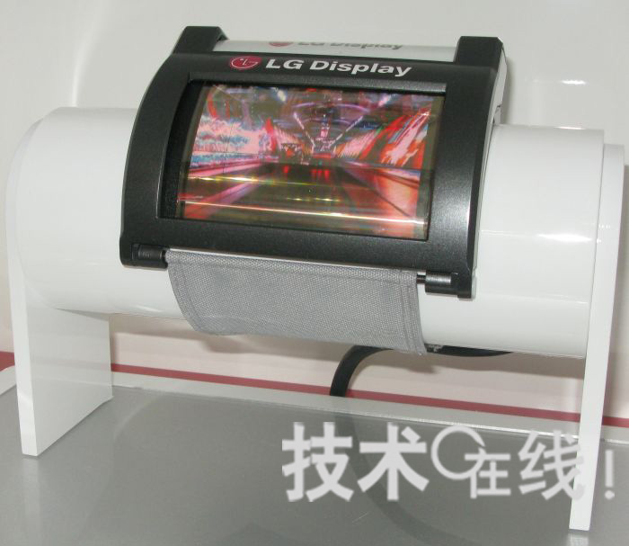 韓國LG顯示器在顯示器相關(guān)展會“FPD International 2009”(10月28~30日,太平洋橫濱會展中心)上,展出了可彎曲戴在手腕上的柔性有機(jī)EL顯示器。此為該公司在學(xué)會“SID 2009”上,于美國環(huán)宇顯示技術(shù)(UDC)展位公開過的柔性有機(jī)EL顯示器更新版。