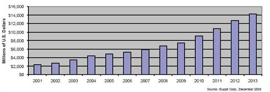 到2013年,全球LED市場將達(dá)到143億美元,比2009年增長近一倍。