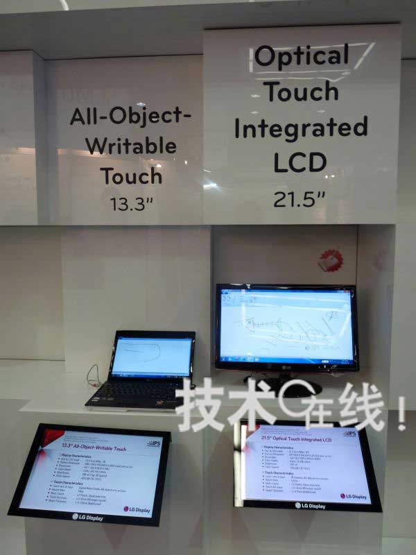 嵌入光學式觸摸面板功能的13.3英寸液晶面板,以及內置觸摸面板功能的21.5英寸液晶面板(LG顯示器)