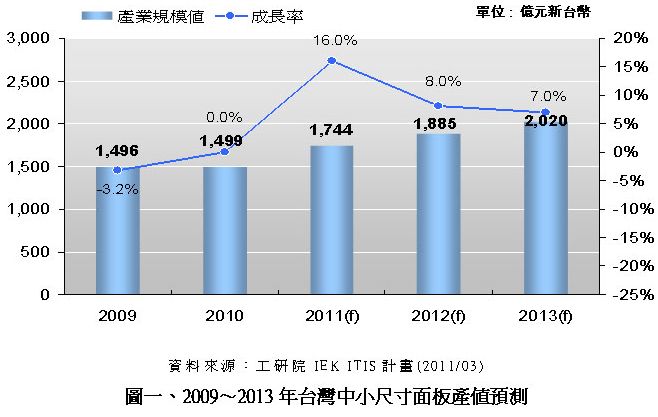 - 2011年臺灣中小尺寸面板產(chǎn)值將大幅成長16%