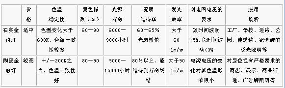 以下是石英金鹵燈和陶瓷金鹵燈相關參數的對比:
