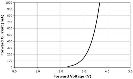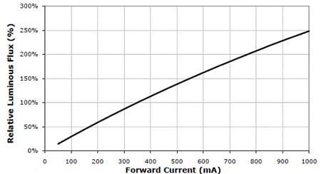 圖1. XLampXP-G的輸出相對光強和正向電流的關系