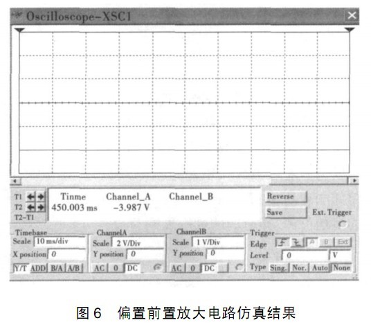 該放大電路經過仿真以后從波形中可以觀察到輸出電壓被拉低到- 4 V 左右, 實現了合理設置靜態工作點的目的;