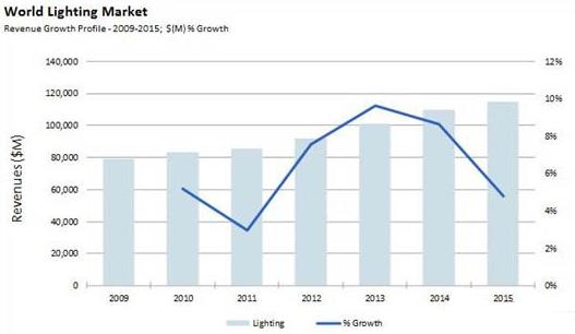 - 2015年,全球照明市場(chǎng)將會(huì)達(dá)到1150億美金