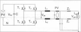 先來看單相并網逆變器的漏電流分析的模型(如圖8)是如何解決單相并網逆變器的漏電流問題的。