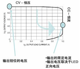 小功率的LED電源通常以恒流驅動,其恒壓功能是在輸出開路的情況下做為保護功能。小功率LED驅動器特性如圖1所示。