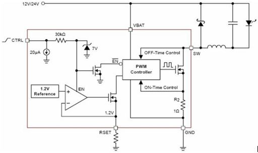 圖2:CAT4201 1-3 W DC-DC LED方案