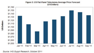 IHS公司預測,電視轉播橄欖球賽季,以及年底假日銷售季促銷活動開始,預計未來幾個月電視價格將會下降,零售商可能出清庫存,準備進貨2012年新款產品。在經濟不景氣之際,美國市場對價格仍然高度敏感,品牌廠商可能極其重視質量和創新,以此來打敗競爭對手。
